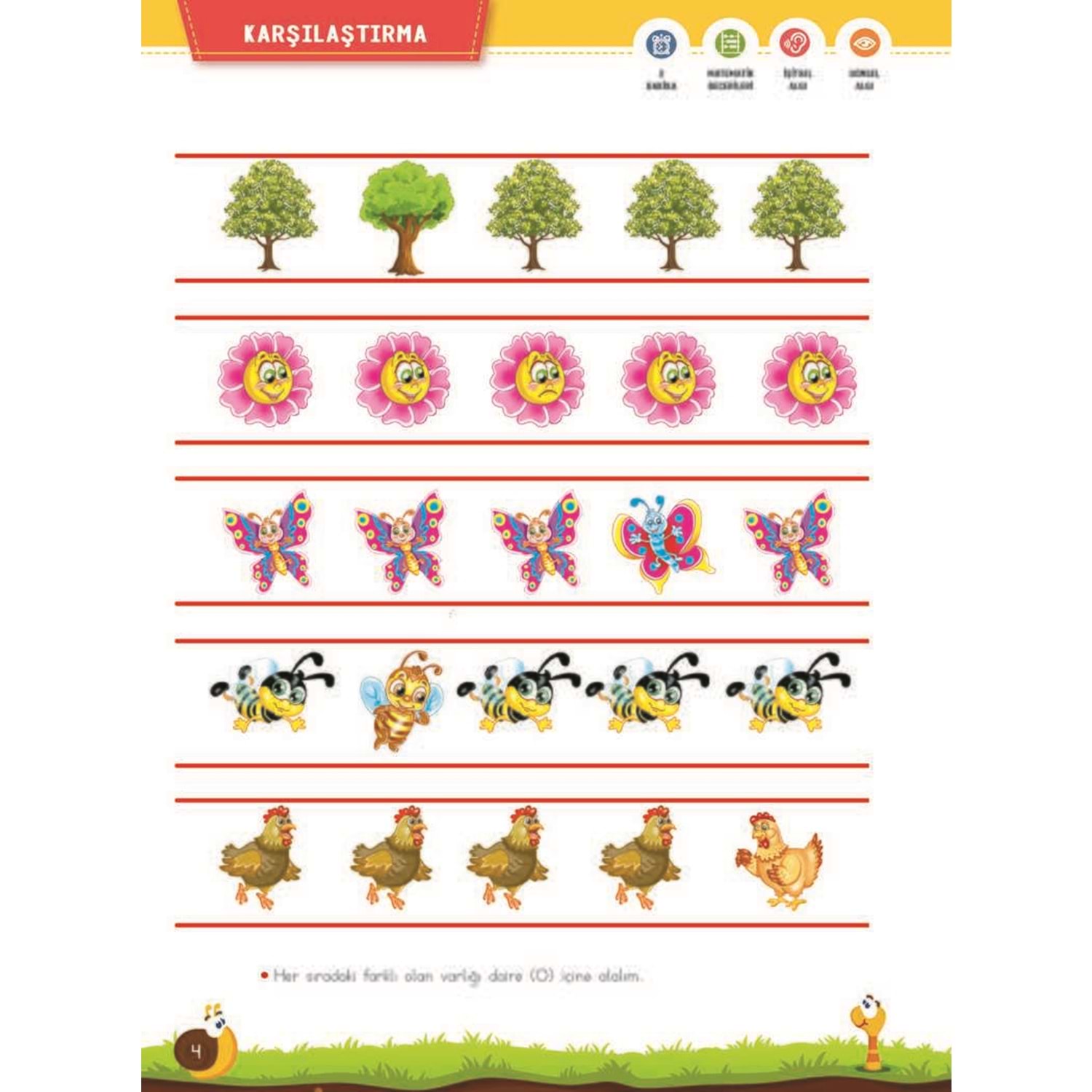 Erken Öğrenme Kitapları Dikkat, Görsel Algılama ve Kodlama Kitabım, okul öncesi dönem çocukların öğrenme sistemini aktif bir şekilde çalıştırıp öğrenme yetisini geliştirerek ders başarısını artırır. Bu kitap ile çocukların dinleme becerisi artar, işitsel algısı kuvvetlenir. Esnek düşünme becerisi ve farklı açılardan öğrenme becerisi gelişir. Neden-sonuç ilişkisi kurmaya başlayarak, öngörü geliştiren çocuğun özgüveni ve akademik başarısı artar. Görsel algılama sayesinde harfler, işaretler anlamlı hale gelmekte, matematiksel işaretler ve geometrik şekiller tanınmakta, mekanda konum, yer, yön kavramları anlaşılır olmaktadır. Kodlama ile birlikte çocuklar, bilişimsel, algoritmik, eleştirel, analitik ve çok yönlü düşünmeyi, sorgulama yapmayı öğrenir.