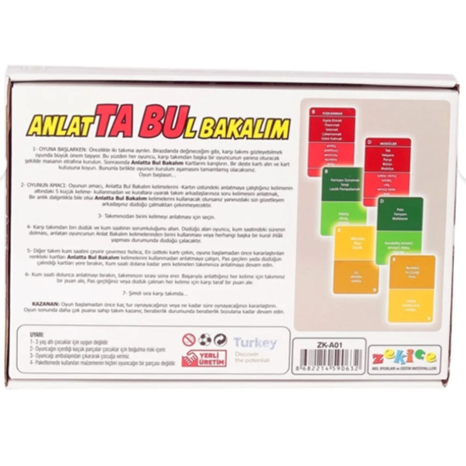 Çocukların dil becerilerini geliştirmelerine yardımcı olan Anlatta Bul Bakalım Anlat Bakalım tabu oyunu, 9 yaş ve üzeri çocuklar için idealdir