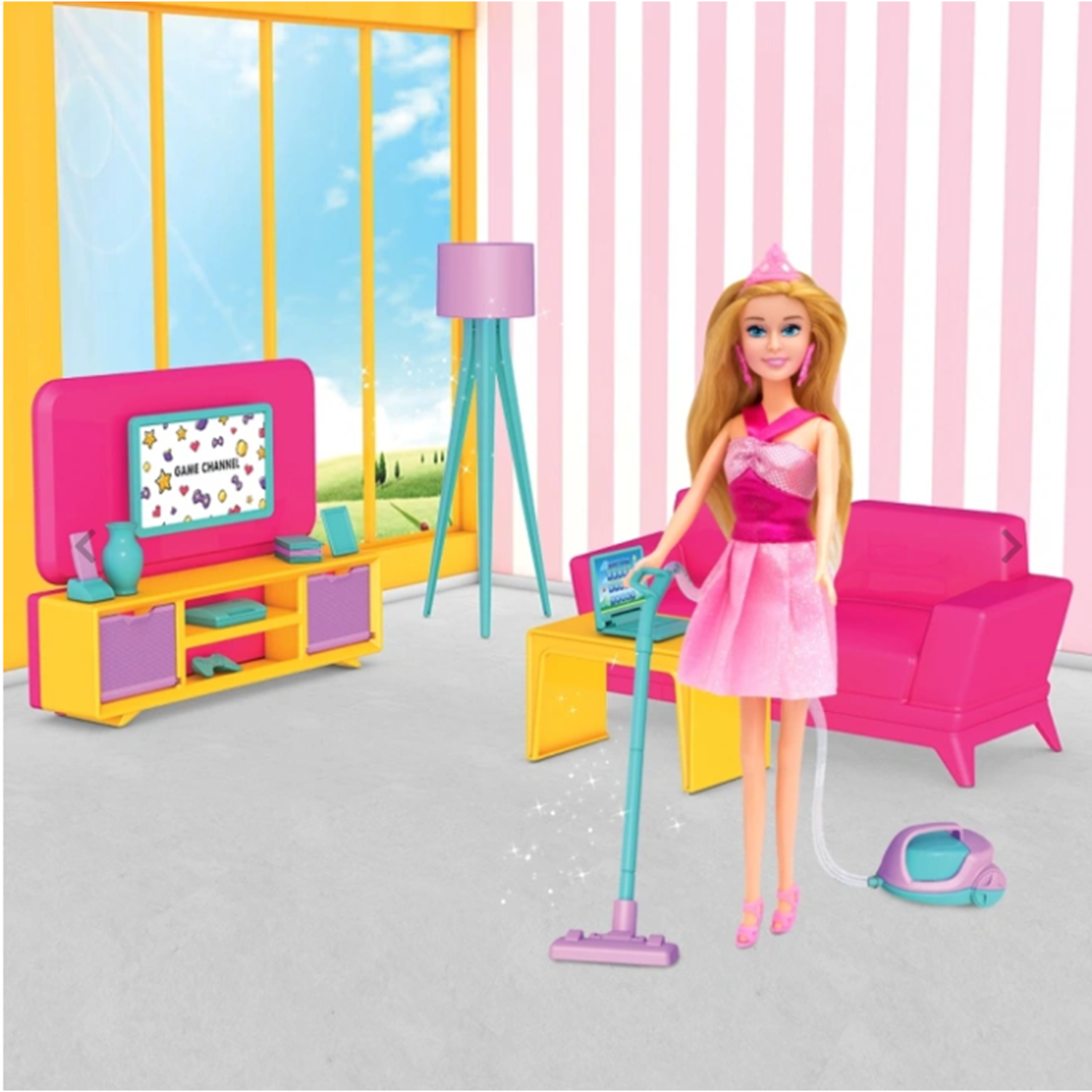 Linda'nın oturma odasında birçok aksesuar ile birlikte oyunlar oynamaya ne dersin?